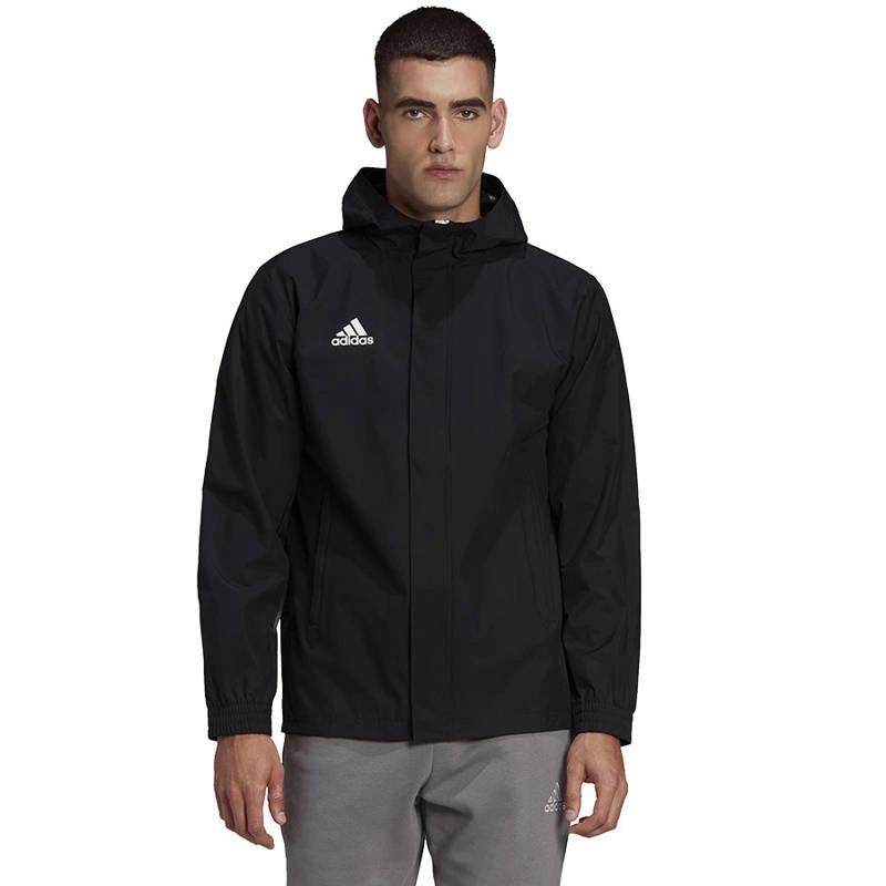 - Leichte adidas Entrada 22 All Weather Herrenjacke in Schwarz für Training bei wechselhaftem Wetter.